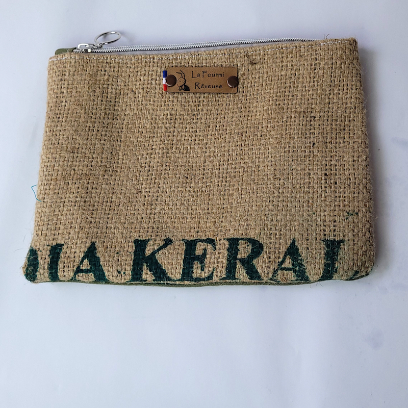 Petite et pratique la pochette zippée en toile de jute recyclée, sera idéale pour être transporter partout avec soi.